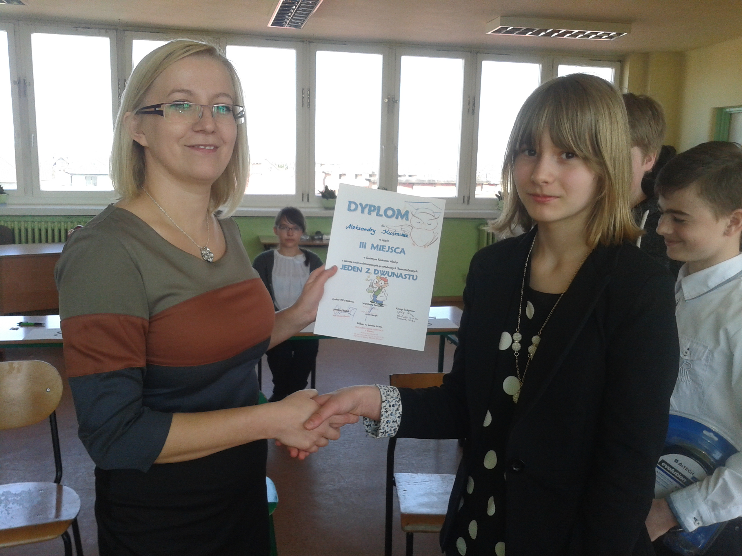 Dominik Jasiński z klasy 6a zajął II miejsce, a Aleksandra Kuśmierz z klasy 6a zajęła III miejsce.