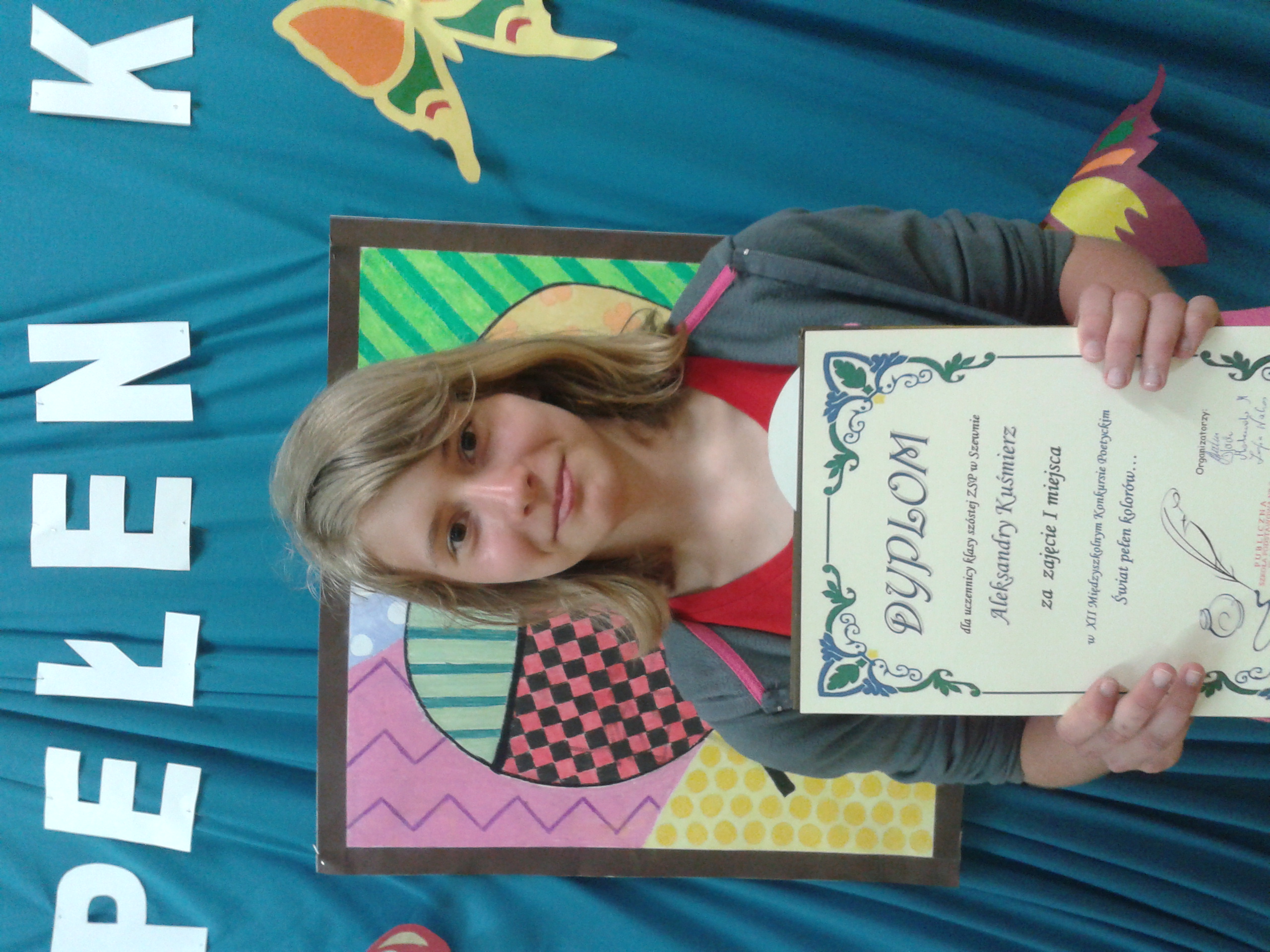 Uczestnicy konkursu zgłaszali jeden napisany przez siebie i nigdzie dotąd niepublikowany wiersz na temat, będący hasłem konkursu. Uczennica naszej szkoły Aleksandra Kuśmierz z kl.6a zajęła pierwsze miejsce w kategorii klas 6!