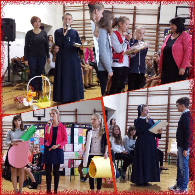 Dzień Edukacji Narodowej to w naszej szkole nie tylko jeden dzień ale czas, w którym uczniowie starają się wyrazić swoją wdzięczność nauczycielom. Przygotowania trwały od początku października, kiedy to członkowie samorządów klasowych pod opieką Samorządu Uczniowskiego własnoręcznie wykonali zakładki do książki dla każdego nauczyciela. Odbywały się także próby teatralne, instrumentalne, taneczne oraz wokalne, aby podczas apelu dla nauczycieli aktorzy, tancerze, muzycy i chór szkolny wypadli jak najlepiej. Humorystyczne i pełne realiów z życia szkoły wystąpienie wprowadziło widzów w radosny nastrój, który zaraz miał zmienić emocje w chwile pełne wzruszeń. Każda klasa przygotowała dla swego wychowawcy własnoręcznie przygotowany plakat z życzeniami, który miał przypominać, że tworzą oni małą szkolną rodzinę. Pamiętamy też o tym, że edukacja to nie tylko szkoła, to także dom rodzinny. Z inicjatywy siostry Anny odbyła się w szkole akcja wykonywania dyplomów dla osób ważnych w życiu uczniów. Dzieci samodzielnie wykonały dyplomy dla rodziców, wychowawców i członków rodziny, a niektóre z nich zostały wręczone podczas obchodów Dnia Edukacji Narodowej. Opiekunki Samorządu Uczniowskiego, Anna Stachurska, Katarzyna Mazan, Karina Wójcik oraz Marta Łukasik, chcą podziękować wszystkim uczniom za zaangażowanie, bo to właśnie dzięki Wam ten dzień stał się dniem szczególnym.